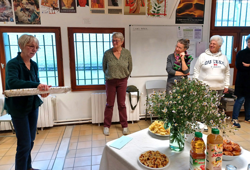 L'ADT offre un cadeau à Chantal en remerciement de son investissement dans le bureau pendant plusieurs années. Bien sûr elle continue les cours avec Agnès. Merci beaucoup Chantal !